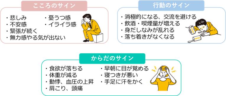 ストレスは、こころや身体に必ず小さなサインとして現れます。眠れない、イライラする、食欲がない、集中できないといった変化は、心身が「そろそろ休んで」と伝えている大切なサインです。こうした変化に早めに気づくことで、不調の悪化を防ぎ、健康を守るための対処がしやすくなります。自分のストレスサインに気づくことは、心のセルフケアの第一歩です。